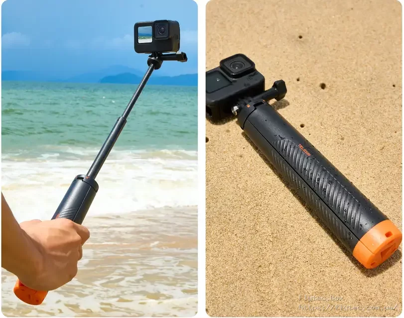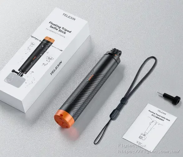 У комплект поставки Telesin S1-TSS-02 входить штатив/поплавок, ремінець на руку, гвинт кріплення.